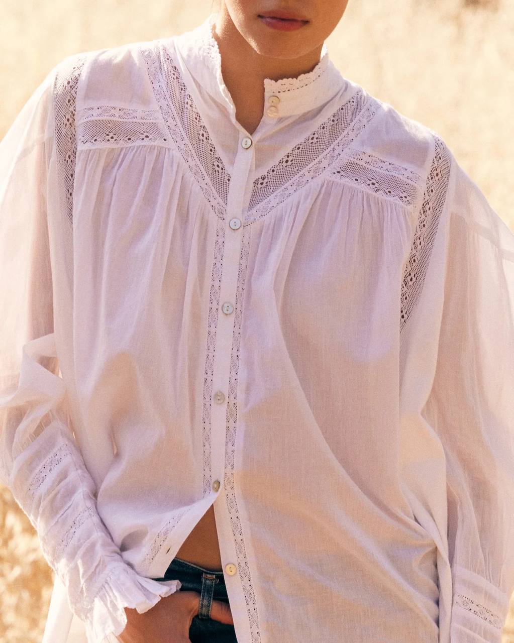 Блузка Mes Demoiselles CRUM хлопковая с кружевным викторианским воротником белая