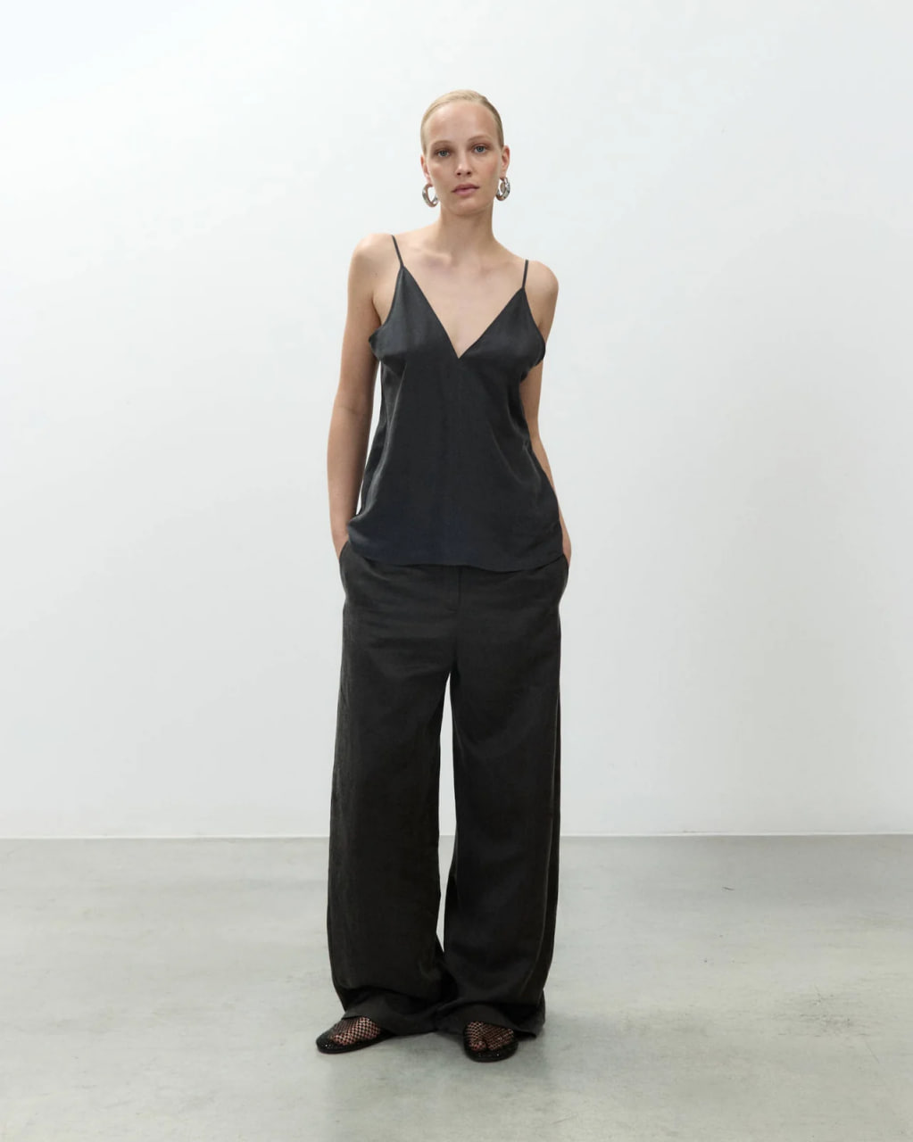 Топ ALYSI с V-образным вырезом шелковый графитовый
