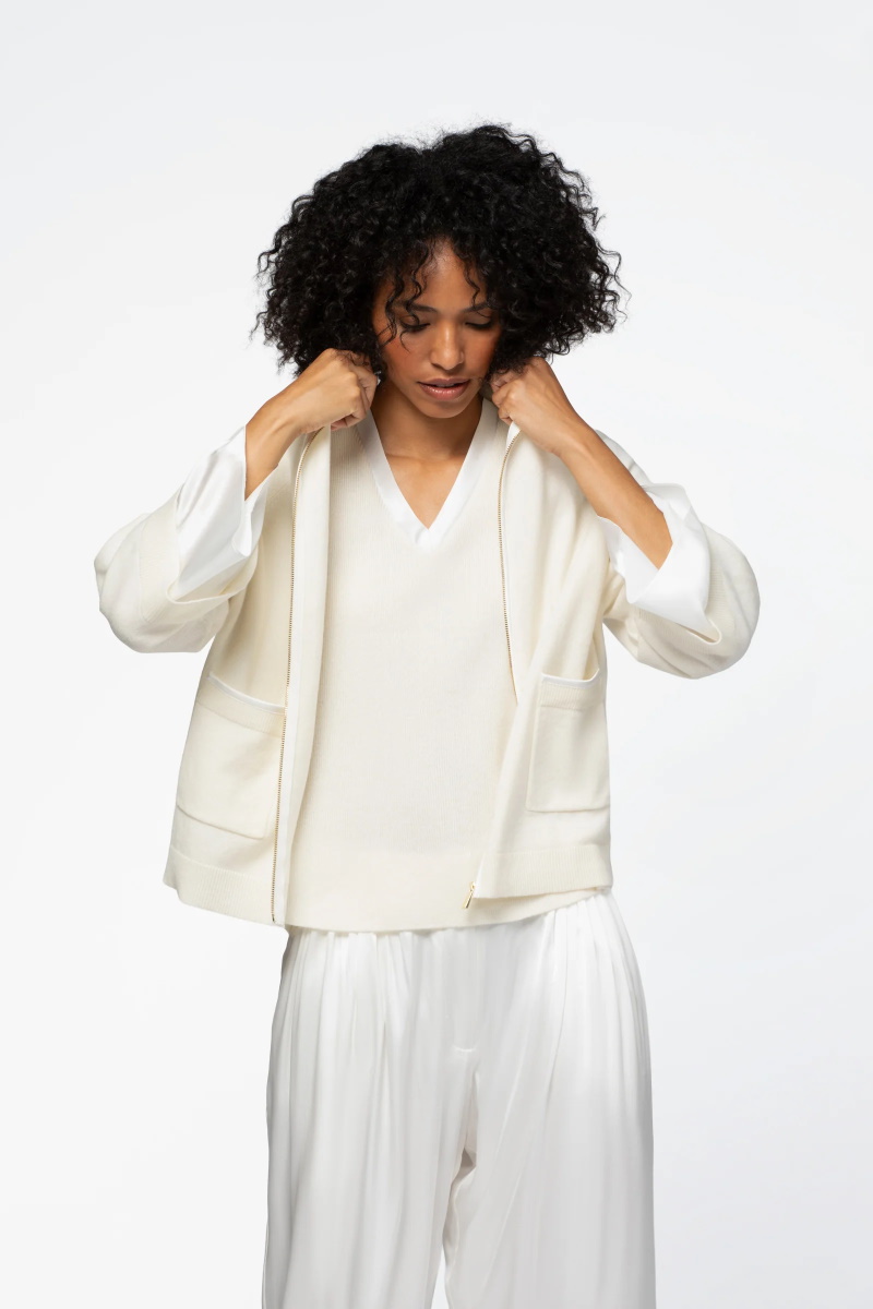 Кардиган MAX&MOI GLORIA с капюшоном и шелковыми вставками на манжетах белый