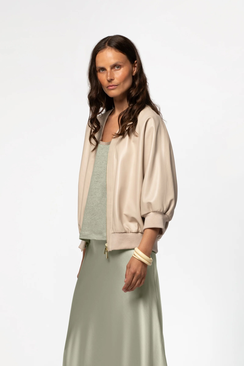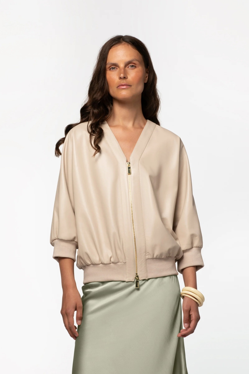 Куртка-бомбер MAX&MOI VERINA кожаная укороченный рукав бежевая