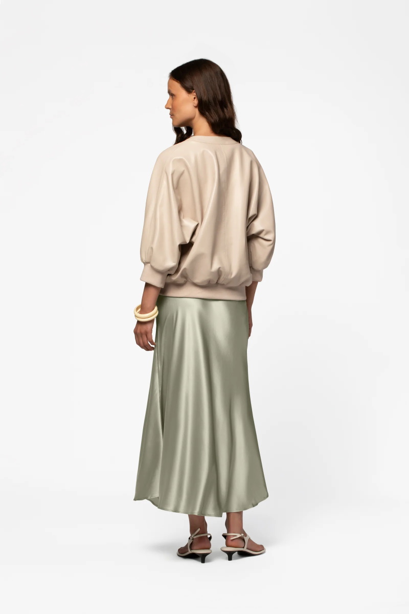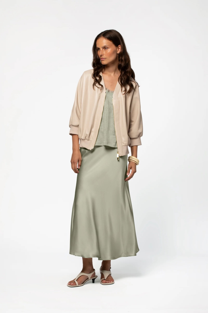 Куртка-бомбер MAX&MOI VERINA кожаная укороченный рукав оливковая
