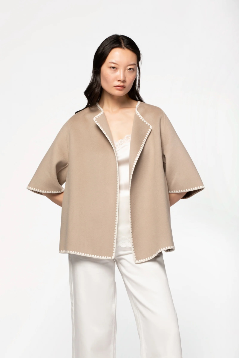 Куртка-пончо MAX&MOI VIRGIL с контрастной окантовкой бежевая