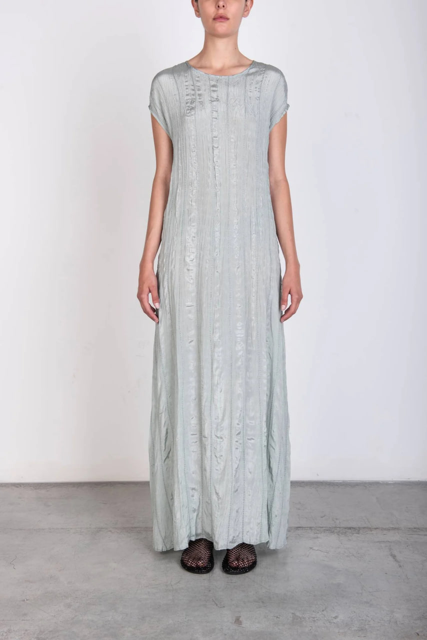 - Длинное платье из 100% вискозы - Ручная обработка складок - Вышивка по краю - Круглый вырез - Прямой силуэт - Короткий рукав