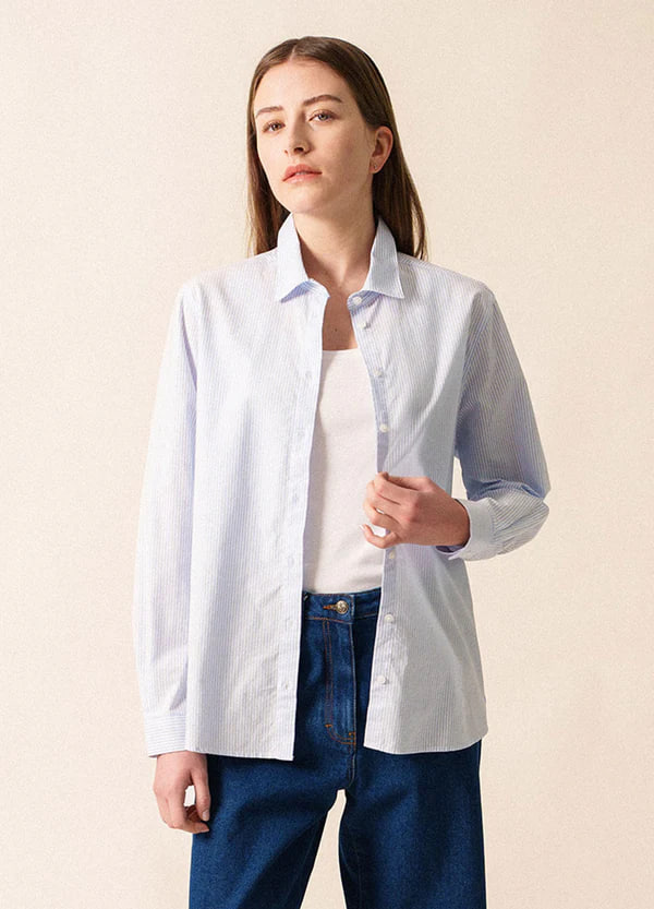 Рубашка Saint James LENA ML свободного кроя в полоску голубая