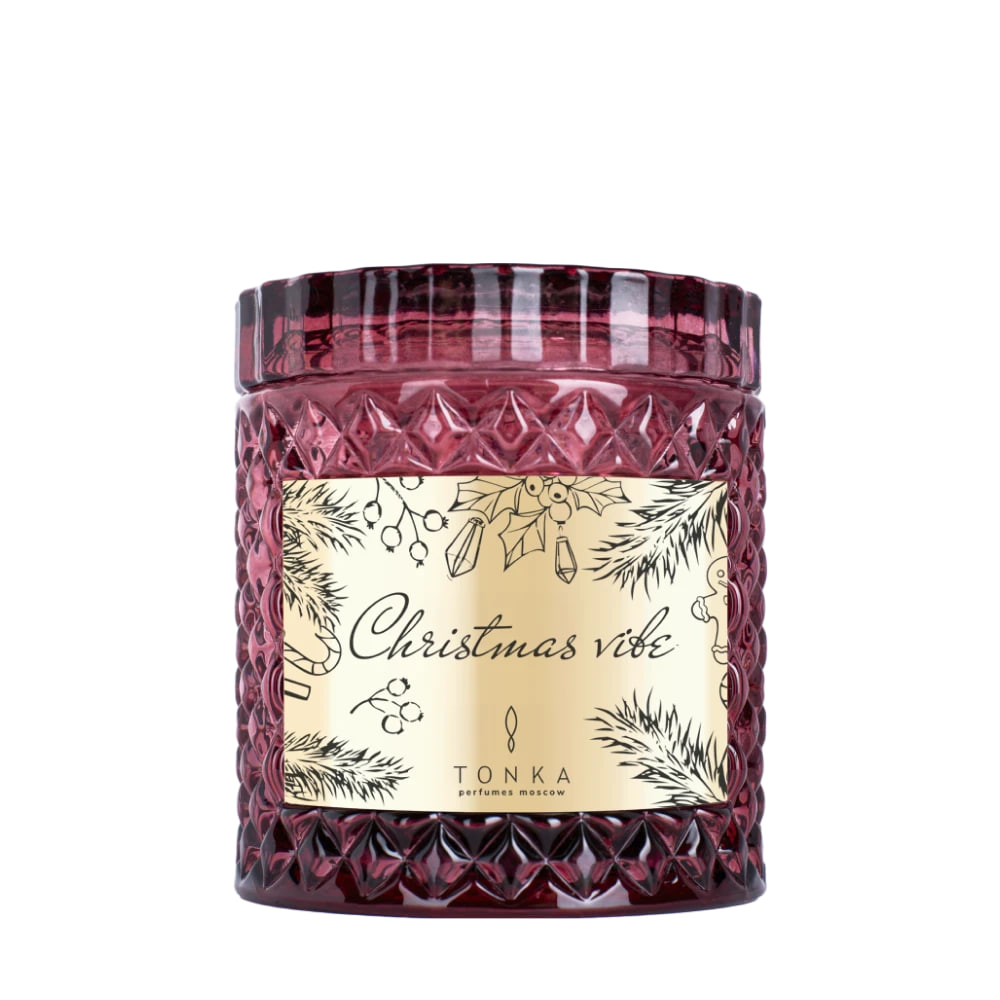 Свеча TONKA аромат «Christmas vibe» СТАКАН БОРДОВЫЙ 220 (тубус)