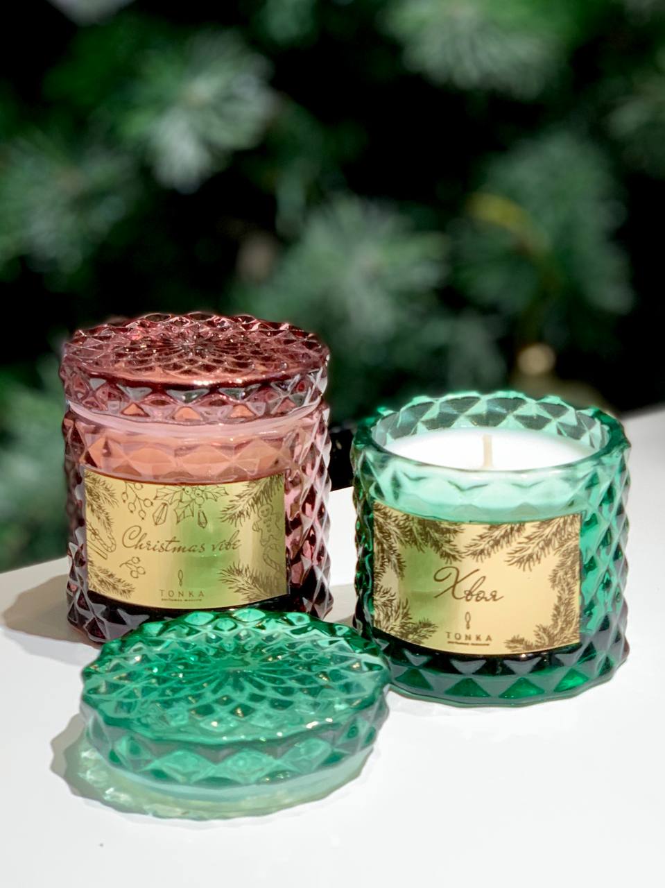 Свеча TONKA аромат «Хвоя» СТАКАН ЗЕЛЕНЫЙ 50 (тубус)
