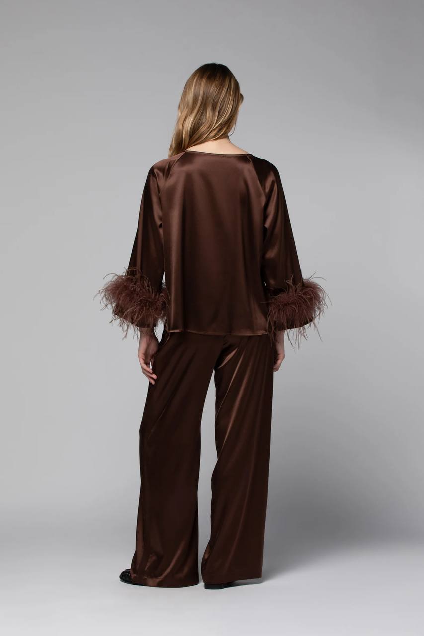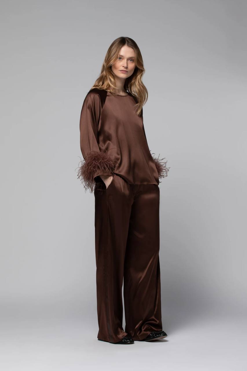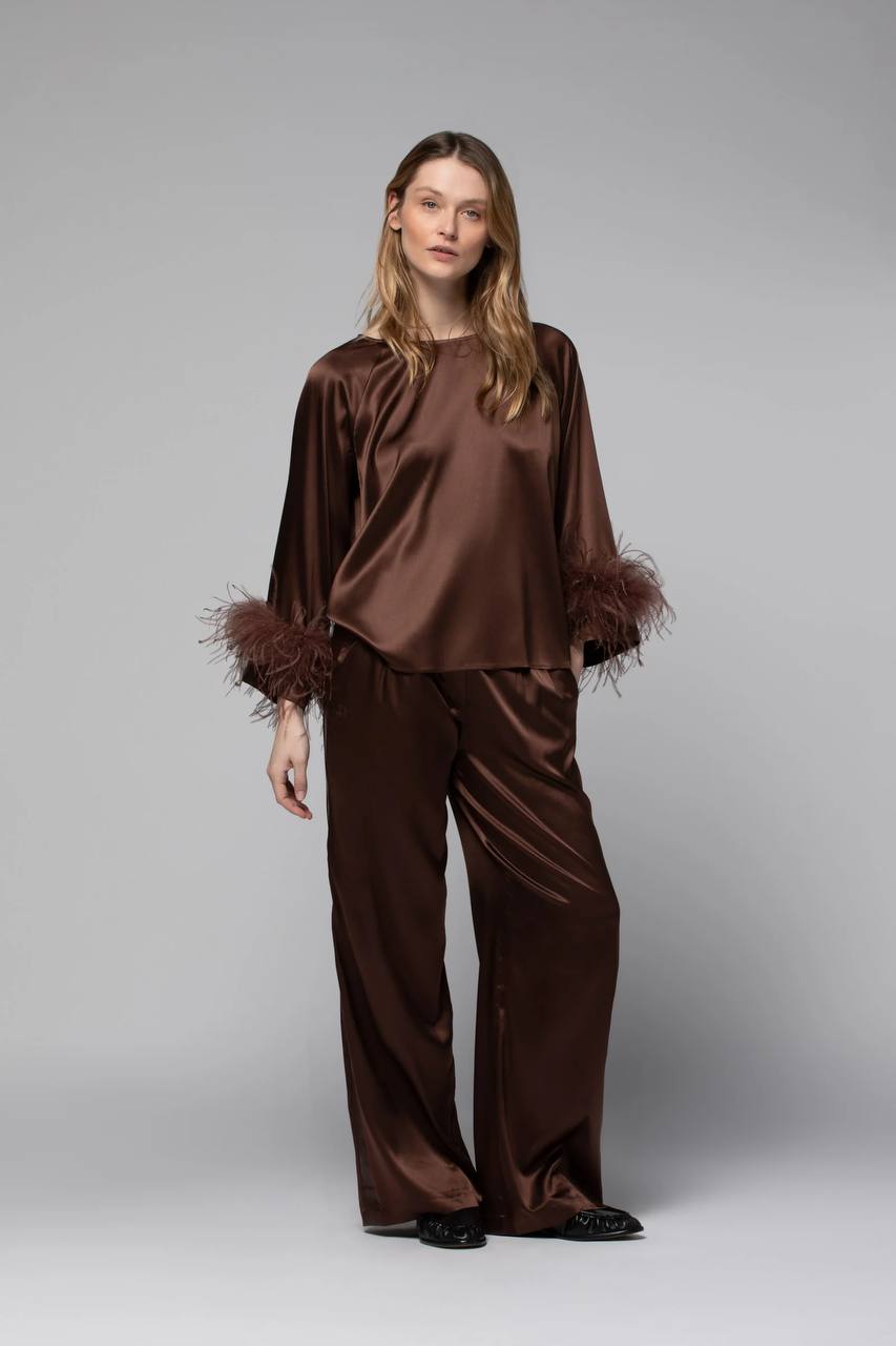 Шёлковая блузка TRISS отличается вневременным дизайном и идеально подходит для любого случая. Изготовленная из прекрасного шёлка, она пленяет своим естественным блеском и исключительной струящейся тканью. Прямой крой с чистыми линиями подчёркивает элегантность деталей: широкого круглого выреза и длинных рукавов с перьями на манжетах.